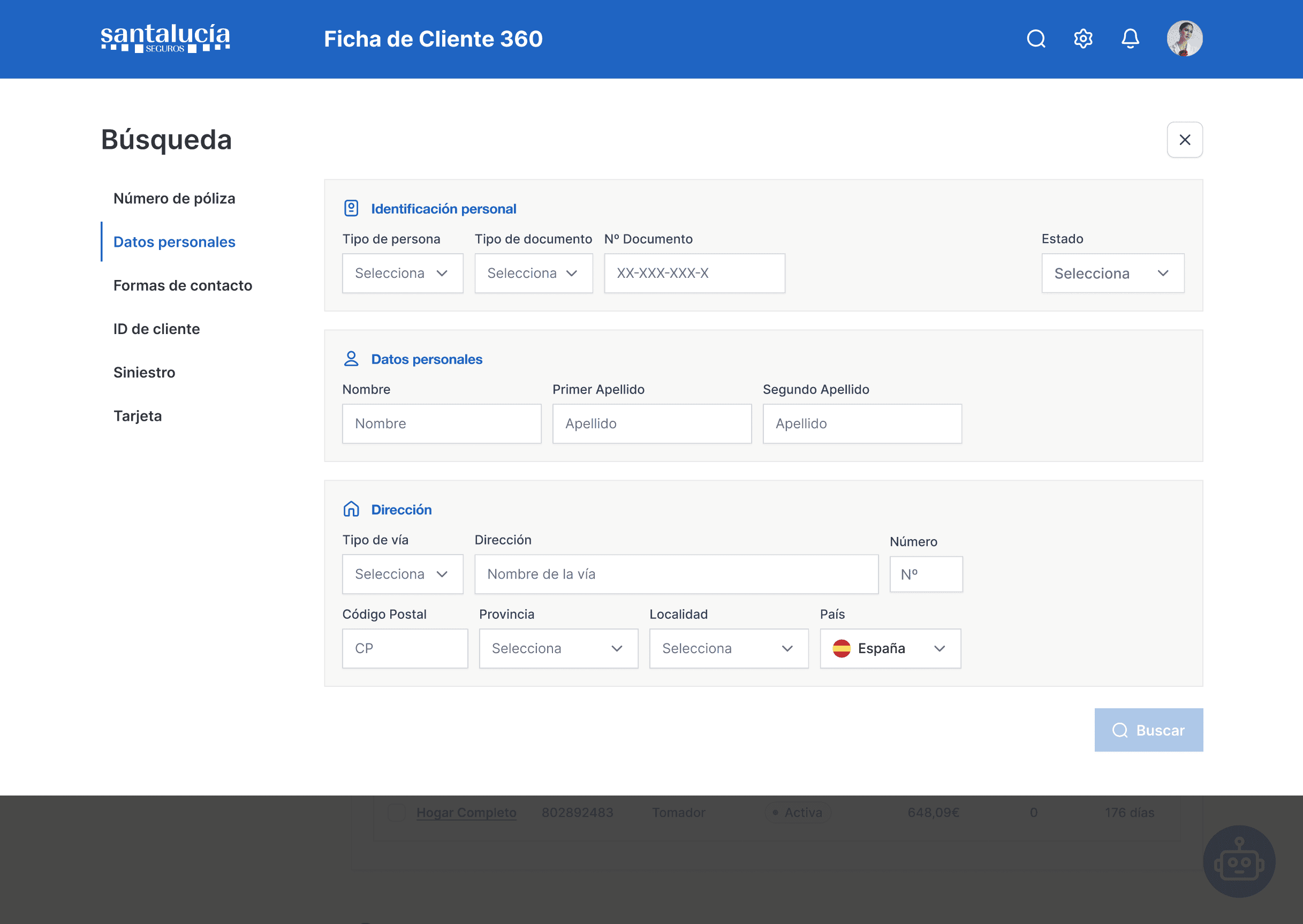 Santalucía faced a pressing challenge with its outdated client management platform. My role in this project encompassed strategic leadership as well as careful project management, ensuring execution from inception to delivery. Collaborating closely with Santalucía, I led a multidisciplinary team through a comprehensive product design process, focusing on understanding user needs, evaluating the current platform, and leveraging insights to create an innovative solution in the final stage.